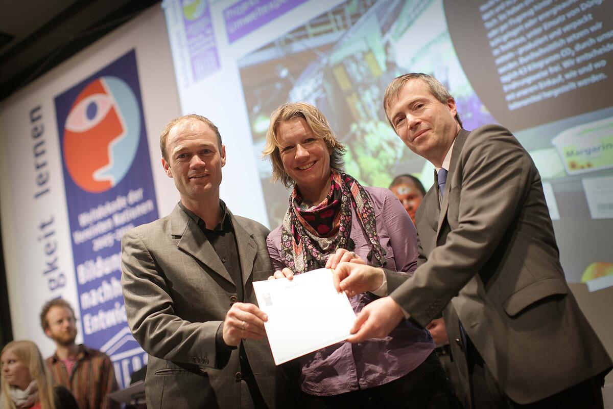 Weitere neu ausgezeichnete DBU-Projekte sind: Lehrpfad Umwelt Vechta (Hochschule Vechta, Niedersachsen), Forschungsprojekt „Umwelt- und familienfreundliche Mobilität“ (Technische Universität Berlin), „Graslöwe – Umweltbildung für Kinder“ (Auslandsgesellschaft Deutschland, Büro Niedersachen, Osnabrück), „Glokal Change“ (Pädagogische Schule Heidelberg, Baden-Württemberg), „MeeresBürger – Umweltbildungsnetzwerk für Meeres- und Küstenschutz“ (Förderverein Nationalpark Boddenlandschaft, Mecklenburg-Vorpommern), „Weil wir es wert sind“ (OroVerde – Die Tropenwaldstiftung, Bonn, Nordrhein-Westfalen), Umweltbildungsprogramm in Indien (terre des hommes Deutschland, Osnabrück, Niedersachsen), „Eco-Schools“ (Eco-Schools, Deutsche Gesellschaft für Umwelterziehung, Schwerin, Mecklenburg-Vorpommern), Bildung für nachhaltige Entwicklung im Thüringer Wald und in der Ostslowakei (Verband Naturpark Thüringer Wald, Thüringen). „Jugend für Umwelt und Sport (JUUS)“ (Deutsche Sportjugend und Naturschutzjugend im Naturschutzbund), „3 Berge in Osnabrück“ (Natur- und Geopark TERRA.vita, Osnabrück, Niedersachsen/Nordrhein-Westfalen).